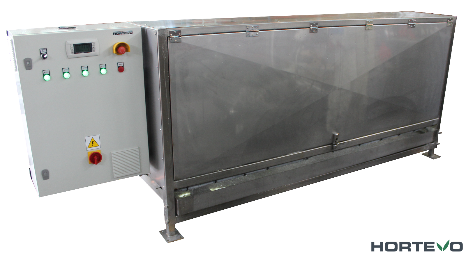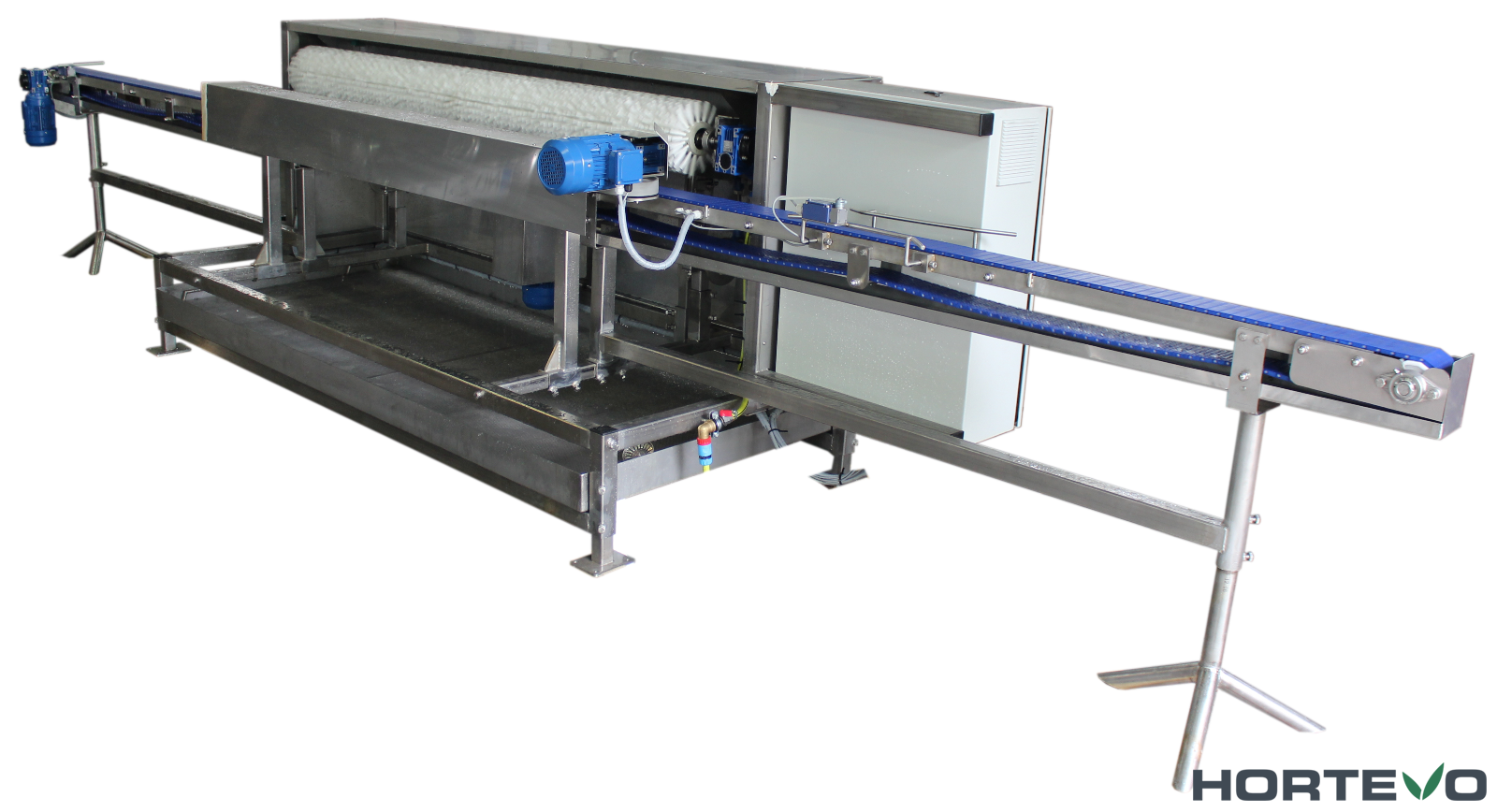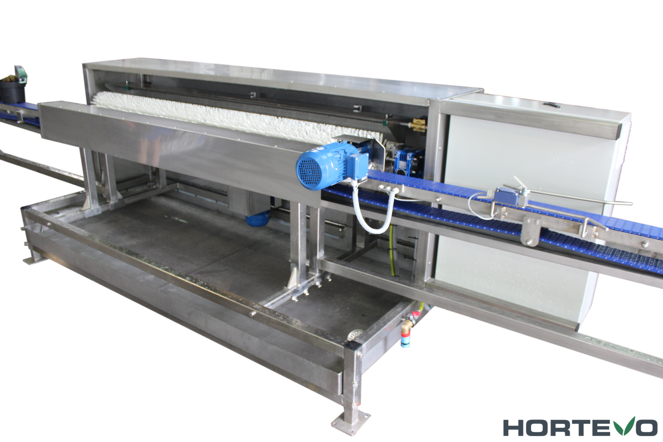 Myjka do doniczek służy do ciągłego mycia doniczek. Proces mycia jest bardo delikatny dla roślin i nie powoduje uszkodzeń liści. Maszyna wyposażona w specjalne szczotki oraz system zreszający nie wymaga namaczania oraz inne sposobu mycia wstępnego.