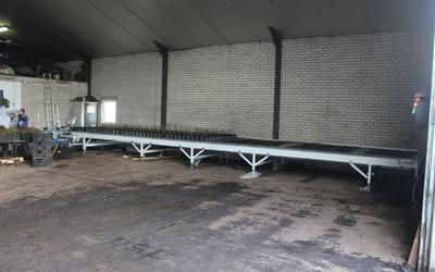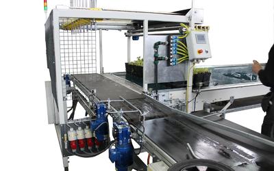 Linia do nawadniania, przesadzania, transportowania kostek z wełny