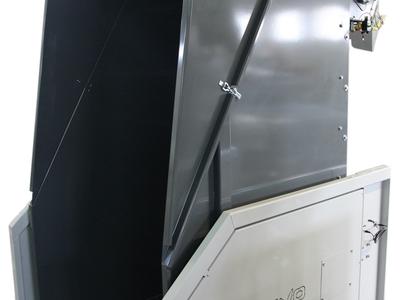 - Wykończenie powierzchni: śrutowanie SA 2,5 i 2 warstwy powłok proszkowych, rama jasnoszary, pojemnik ciemno szary oraz wszystkie elementy ścierne elektrolitycznie ocynkowane.